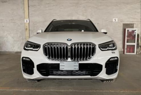 2019款宝马X5 配置:大豪华包(激光大灯 茶杯托 手动遮阳帘 前后座椅加热 前排舒适座椅 抬头显示 环影 停车辅助 宝马系统链接包 智能钥匙 无钥匙进入 车库遥控 四区空调 旅行舒适包 哈曼音响 电吸门 无线充电 地射灯 卫星无线电接收系统 WiFi发射系统) M运动包(M空气学包围套件,M运动型方向盘,M运动蓝色刹车盘,M运动排气) 金属漆 底盘底升 21轮 蓝色卡钳