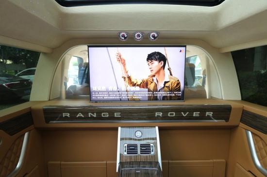 19款路虎揽胜皇家一号配备双重电控升降隔屏(木质电视升降隔屏+电控雾化玻璃升降隔屏),为乘坐者营造出一个顶级雅致的私人空间!32寸高清液晶电视搭配DVD影音系统(带HDMI及蓝牙接入)、2个10英寸小HD电视、殿堂级高保真环绕音响,铺垫了一场影音视频环绕的氛围之行。