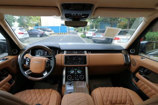 路虎揽胜皇家一号皮质面料与包边打造出极其典雅、精致的内饰细节看起来明显更为豪华,原有的中控台只保留了少数几个按钮及操作旋钮。