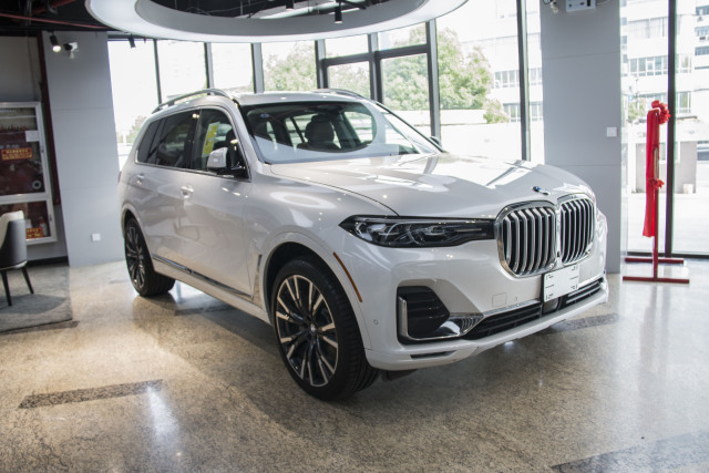 宝马X7 (配置|询价) 19款 3.0T Luxury豪华(6座) 矿物白金属漆/松露棕加长Merino皮革座椅 标准配置:全景天窗,LED灯,前、后轴空气悬架,三级底盘升降四驱; 选配有:1、22寸多辐双色钛灰色轮毂756型号,带防爆轮胎;2、寒冷天气套餐:加热前座椅扶手和方向盘,前后加热座椅,5区自动气候控制;3、豪华座椅包:多轮廓座椅,前通风座椅,前座按摩座椅;4、停车援助套餐: 停车助手,具有3D视图的环绕视图;5、手势控制;6、水晶档把套件;7、LED星空顶;8、特选松露棕加长Merino皮革座椅、美利奴全皮内饰;9、液晶钥匙;10、第二排船长的椅子,6座;11、皮革仪表板:12、驾驶辅助包:主动驾驶助理专业,限制进入高速公路的扩展交通堵塞助手; 13、越野包:自适应调节与4种驾驶模式。