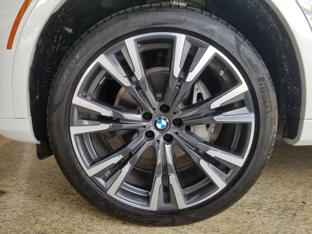 侧面上,宝马X7一条腰线从车头贯穿至车尾,使车身侧面看上去十分修长。车窗四周采用当下较为流行的镀铬条进行点缀,显得格外时尚。大尺寸多条幅轮毂的设计充满了运动气息,配上车门下方的踏板,显得十分有气势。车身尺寸方面,宝马X7的长宽高分别为5151/2000/1805mm,轴距为3105mm