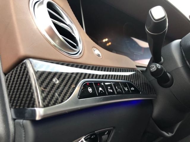 内饰方面采用了奔驰全新设计风格,其内饰面板和车顶均由真皮包裹,搭配真皮座椅,彰显华贵气质。中控台配备有两块大尺寸液晶中控显示屏,出风口中央配有IWC万国时钟,凸显整车豪华感。全新三幅式多功能方向盘采用黑色翻毛真皮包裹,并用银色镀铬进行点缀,战斗感、科技感、豪华感无缝融合。