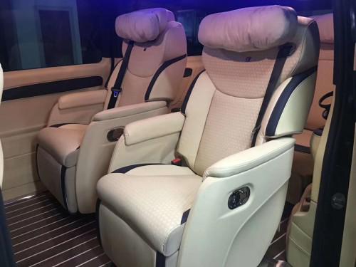 19款进口奔驰迈特斯商务车采用意大利进口高级NAPPA真皮座椅、高回弹海绵坐垫,提供柔软舒适的依靠感,更显高档,电加热通风系统、电动按摩系统等功能,更快的缓解旅途疲劳,享受舒适之旅。