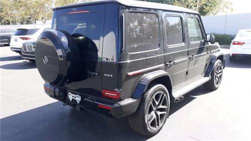 19款奔驰G63 (配置|询价) AMG与普通版车型相比,奔驰G63 AMG外观采用了大尺寸前保险杠、全套车身动力套件、奔驰G63 AMG还配备了镀铬中网和V12 BITURBO标识彰显这款车的身份。奔驰G63 AMG采用AMG车型特有的轮拱饰条、不锈钢迎宾踏板以及不锈钢防擦条,挡泥板上的“V8 BITURBO”标识以及后门上的“G63 AMG”铭也十分醒目。