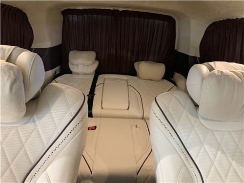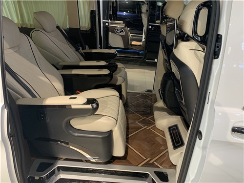 改装商务车●全新安道尔航空座椅、气动按摩、加热、通风、一键式记忆座椅调节、腿拖调节、靠背前后调节,头枕升降,电动肩部支撑。 ● 豪华沙发床加热、靠背调节、腿拖调节、半展平状态。 ● 可拆卸式娱乐活动桌 ● 沙发床后背手动储物抽屉 ● 四季实用透明环保地膜 ● 经典镀络衣架 )限量版手工高光泽座椅扶手 外观部分 ● 车身尺寸MM5370*1928*2080(长宽高) ● 整车外观镀铬件装饰、镀络门踏 ● 整车漏电保护系统。