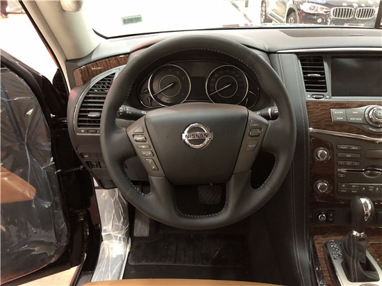 19款途乐Y62钛金版底盘接纳了最可靠的硬轴设计,后防请倾杆一样可有电动打消功效,轻易越野,这是真正四驱迷们至爱而难过的硬派四驱车型。前脸打击感强,这应当是整车最为粗豪之处了,18寸轮毂其实不算大,多条辐轮毂造型较为粗壮,偏向奢华。尼桑途乐采用了豪华轿车惯用的四幅风向盘设计,粗细比较合手再加上真皮加实木的用料,手握感觉极佳。另外方向盘功能强大,集成了音响、空调控制及蓝牙车载免提系统,使驾驶者在行车中更为安全,做到手不离方向盘。同时方向盘加热功能,令驾驶者双手在寒冷的冬季也能得到最佳的呵护。