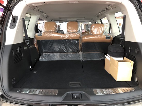 19款日产尼桑途乐为三排座车型,内饰整体风格豪华,真皮座椅、DVD娱乐、上下坡以及胎压监测等装备也都悉数出现。新款日产途乐内饰材质也更加的考究,使用了皮革、铝以及木纹样条作为点缀。注重了车内空间的提升,尤其是在第二排乘客的腿部空间方面,新车比老款车型增加了10cm之多。