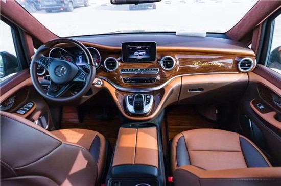 奔驰V (配置|询价)250商务的中控台采用了贯通的一体式设计,其按键布局、中控台液晶屏设计以及COMAND系统的控制区均与全新S级 (配置|询价)和C级相似。另外奔驰V250采用了怀挡设计取代了之前传统的中控台后置排挡杆的设计。奔驰V250商务的车厢设计更加豪华,同时中排座椅还可以旋转以方便乘客交流。