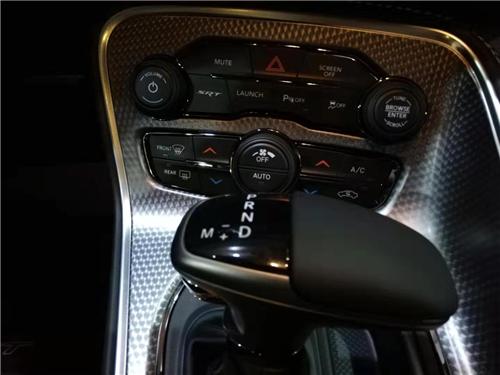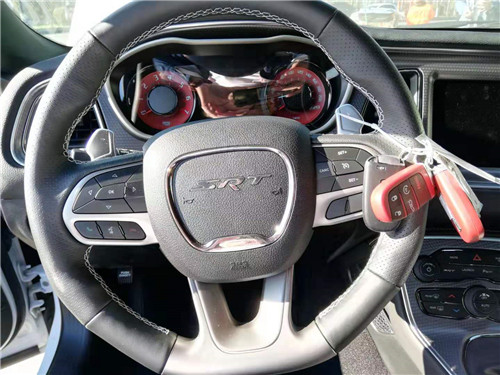 挑战者SRT红眼地狱猫配备平底方向盘,道奇地狱猫拥有运动化的氛围、运动座椅、仿碳纤维内饰部件及铝合金装饰面板。仪表盘采用复古设计,但大部分是彩色液晶显示,中控面板配备的8.4寸屏幕集成一个优秀的系统,用户可以在上面调校车辆参数,比如变速箱挡位尺比、直线加速弹射起步、G力设置、比赛计时等专业数据。