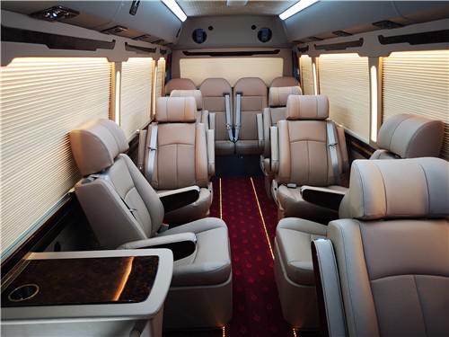 丰田考斯特改装15座商务车改装商务车尤其注重实用性的设置,高档的办公桌,双人汇报席,固定秘书席位。最突出的特点是我们对于车厢内冰箱和酒柜装饰,这些装置与司机驾驶席后的显示屏隔断,将车厢与驾驶席隔开,我们可以在隔断的中间增加电动门,方便来回的交流和沟通。