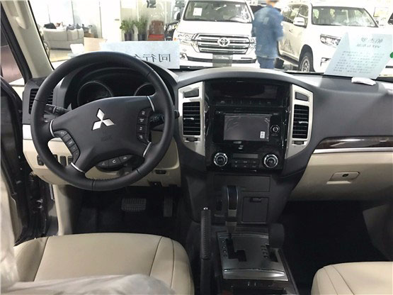 内饰方面:进口三菱 帕杰罗 内饰设计简约平实,大面积银色的装饰面板、高亮度银色外环仪表盘、上深下浅双色调处理的中控,局部使用的深色桃木材质。进口三菱 帕杰罗方向盘采用三幅真皮多功能方向盘,并集成了具有定速巡航控制键,配合运动轻便感十足的拨片换挡杆,在操控便捷的同时极大地提升了驾驶乐趣。