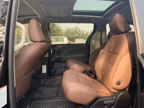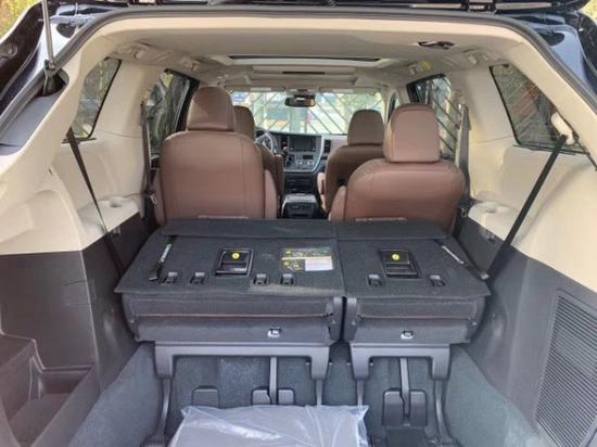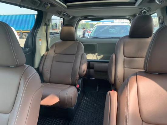 20款丰田塞纳内部空间非常大,充分发挥了MPV的优势。 座椅全部采用双色真皮,第二排座椅的腿部支撑,放倒第三排座椅,加上腿部支撑,完全变成了两张摇篮床,让长途旅行多了一份舒适。宽敞舒适后座空间,配上该车安全稳定的行驶系统,保证途中也能舒适地谈上生意