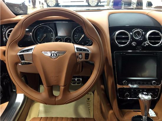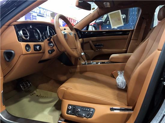飞驰的中控台造型更偏复古,而用料则是这台车最大的亮点。中控台大面积的胡桃木饰板仿佛玉石一般润泽,让人非常舒心。三幅式方向盘由胡桃木与真皮组成,握感相当棒。仪表盘内使用了大量的镀铬边框,表盘设计较为复古。推拉式的空调出风口,开闭之间的阻尼适中,手感很棒,精致的镀铬工艺及造型更是让人欲罢不能。