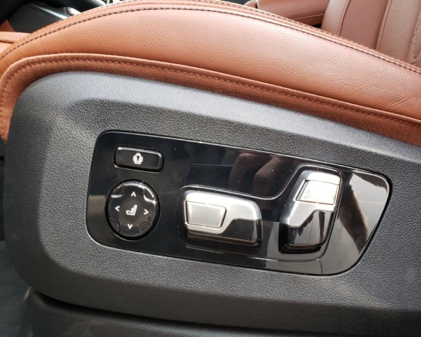 全新宝马X7搭配底盘升降功能,通过推杆,可以将车身最多升高40mm以提高通过性,当车辆处于运动模式或时速超过138km/h时,车身会自动降低20mm,另外静止时,驾驶员可手动降低悬架40mm,方便装载物品。中控台下方的两个杯架,各带有制冷和加热功能。