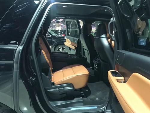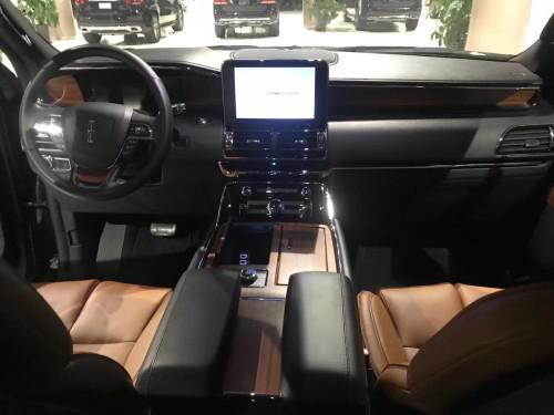 19款林肯领航员 (配置|询价)3.5TT加长版7座精雕细琢的内饰, 结合了美国胡桃木和高级真皮材料、丝光镍饰件与白色发光二极管等组合一起,营造出一个豪华、浪漫而又极具现代感的车内环境。方向盘和轿车一样的轻盈,周身散发出来的尊贵气息,让人肃然起敬。