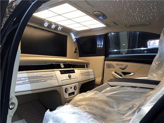 新款奔驰S560后排空间十分宽敞,两个独立座椅的设计保证了乘坐的舒适性,并且后排两个座椅中间的扶手箱,在能倚靠的同时拥有了一定的储物空间,此外还带有两个小桌板,供后排乘坐的老板办公使用。