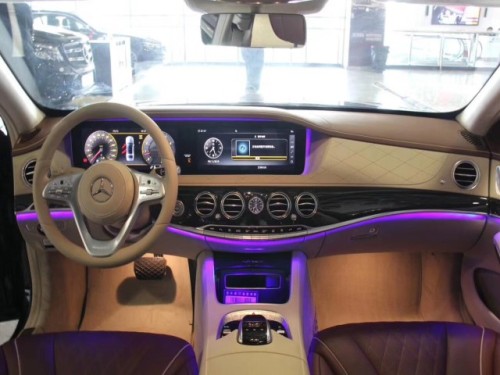 2019款全新奔驰迈巴赫S560全新造型的方向盘,由原来的两辐造型变为了三辐式,仪表盘和中控的屏幕变为一整块,增加了畅心醒神功能,预设了活力、愉悦等6个情景,选择不同情景时车内的氛围灯、音乐音效、座椅按摩等都会根据所设情景改变。