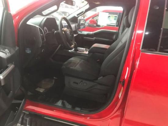 福特猛禽内饰采用独特的中控台和门饰板面漆和真皮包裹的方向盘。中控台部分辅以银色饰板装饰,六指针仪表盘的设计有些后工业时代的复古风格。采用带电冷热功能的可记忆式皮革座椅,头枕四向可调,搭配铝饰条和黑色钢琴烤漆内饰。可电动升降的后窗带隔板和电热除霜功能。进口18款福特猛禽皮卡真皮座椅包裹性很强,无论是越野还是长途旅行,都很舒服,丝毫不感觉到这大家伙的压抑,二排空间也是十分宽敞,乘坐四个身材高大的乘客绝对没问题。座椅折叠起来可以放一个冰箱,而且门上储物格空间也是够用,虽然不像公羊后排那么豪华,有简易床,但是这种实用的理念就是福特的宗旨。