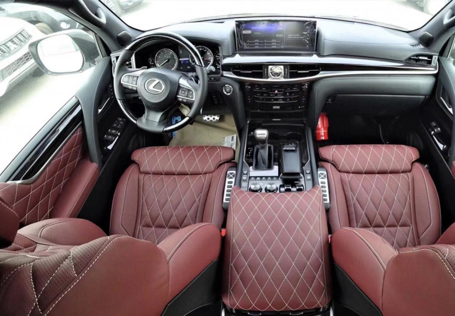 19款中东版雷克萨斯LX570 MBS四座 配置:黑色外后视镜,独立4座控制、MBS多轮廓座椅(菱形格子走线)、金属漆、黑色前中网、前后大包围、射灯、21轮、遥控启动、车身防擦条、流水式转向灯、带运动底盘、运动模式、换挡拨片、冰箱、天窗、智能卡、电眼、环影、后娱、底盘升降、前座椅通风加热按摩、半苯胺真皮、导航、桃木多功能方向盘、桃木内饰、铝制行李架、航空照明脚踏、LED 氙灯 大灯清洗、迎宾灯、四区空调、电尾门、ACC自适应巡航、雷达测距、后座椅通风加热按摩、后排储物格、车道保持、二排遮阳帘、抬显、马克莱文森音响。