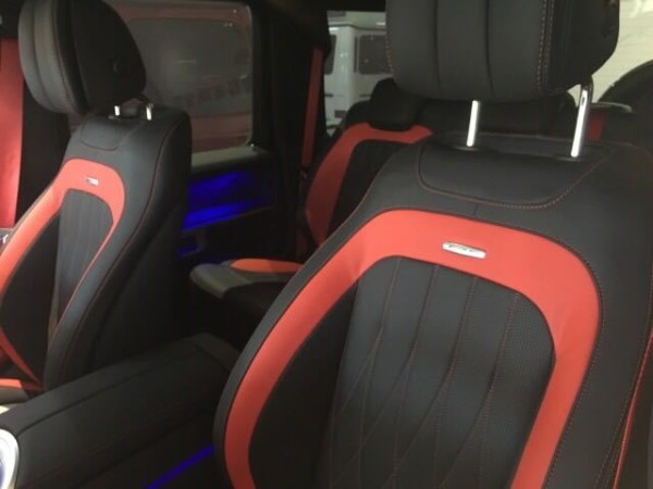 19款奔驰G63 (配置|询价) AMG与普通版车型相比,奔驰G (配置|询价)63 AMG外观采用了大尺寸前保险杠、全套车身动力套件、奔驰G63 AMG还配备了镀铬中网和V12 BITURBO标识彰显这款车的身份。奔驰G63 AMG采用AMG车型特有的轮拱饰条、不锈钢迎宾踏板以及不锈钢防擦条,挡泥板上的“V8 BITURBO”标识以及后门上的“G63 AMG”铭也十分醒目。