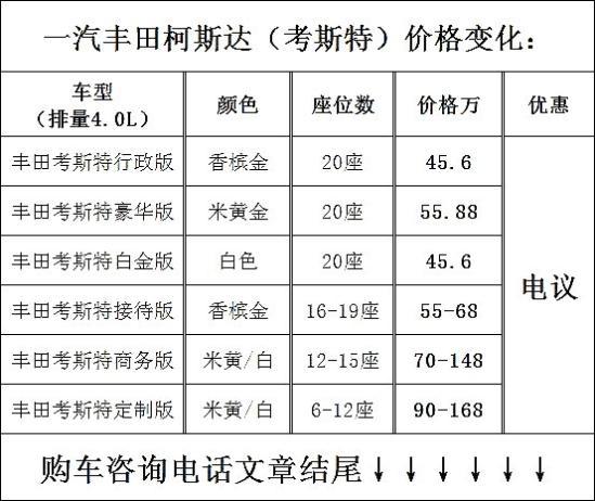 丰田考斯特4S店热线 130 1114 5577 同微信