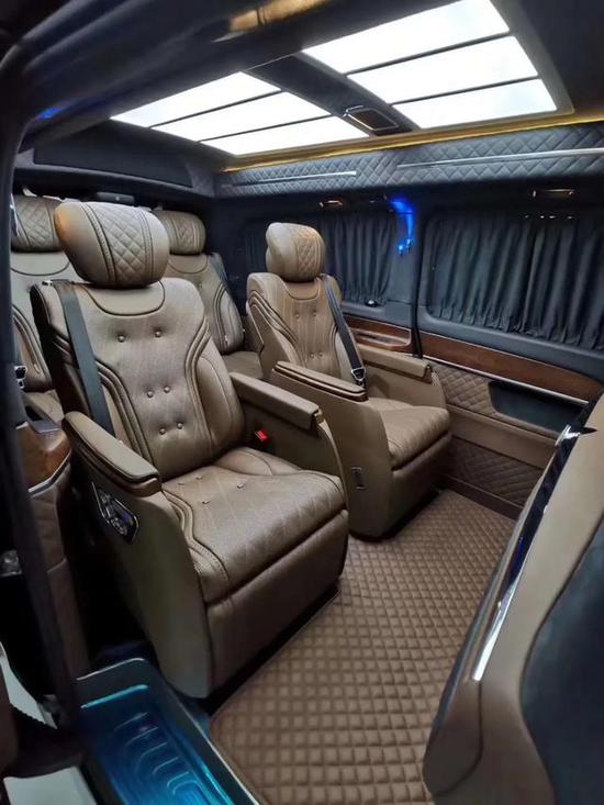 奔驰V260改装房车有别于常规商务车的一项突出个性,当数第二排搭载的总裁级航空首长席,融入心事人体工学设计,更依照东方人的身形特征专属调校,外包进口头层牛皮,联手世界顶级缝线商打造,与身体每一处贴合都如丝质感,这个高端商务车也能有此等体现,那,如果再加上电动按摩、通风、加热、180度旋转等多项舒适度调节(前后电动调节-靠背电动调节、电动头枕、电动推拖),那么常规商务车就望尘莫及了,这就是奔驰带给你的私享体验。