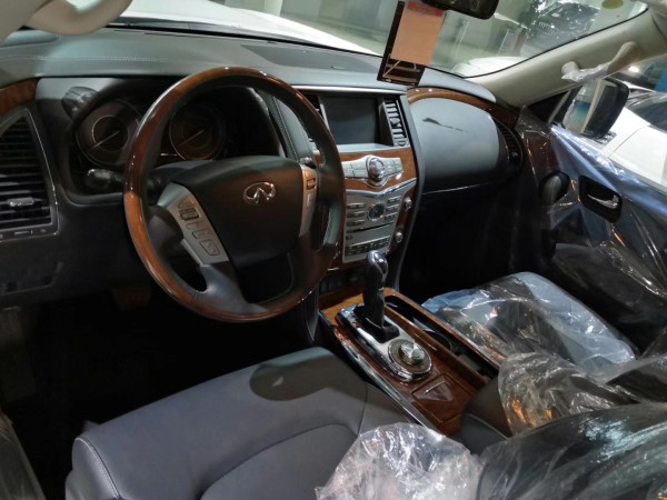 [配置]:QX80配置 5.6排量v8 398马力 7速 全时四驱 多功能方向盘 一键启动 无钥匙进入 主驾座椅记忆 主副8项电动座椅 腰部支撑 触摸大屏 自动空调 钟表 座椅加热 天窗 自动防炫目后视镜 桃木内饰 电动尾门 冰箱 后排自动空调 后娱 第三排座椅电动收放 前后电眼 led大灯 led日行灯 自动大灯 22轮 环影 胎压 8气囊 定速巡航 行李架 方向盘电动调节 bose音响