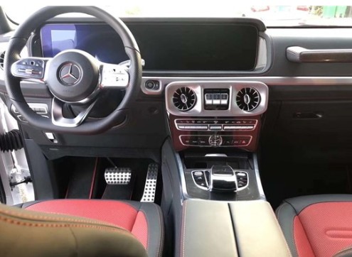 2019款奔驰G500配置:AMG包*(AMG外饰:AMG样式前后裙,20寸AMG合金多幅轮毂,运动排气装置;AMG内饰:三辐多功能运动方向盘,AMG脚垫) *不锈钢外观包*(不锈钢备胎盖、带3D奔驰车标,左右侧踏板,不锈钢照明迎宾踏板,不锈钢后装载保护) *驾驶辅助包*(ACC自适应巡航和盲点辅助系统) *COMAND系统;前排座椅通风;前后座椅加热;Burmester柏林之声音响;氛围灯;隐私玻璃;中控双液晶大屏显示;黑色内顶;吸烟包;滑动天窗。