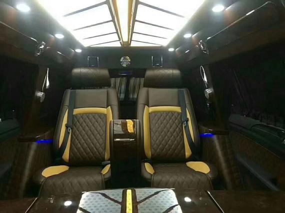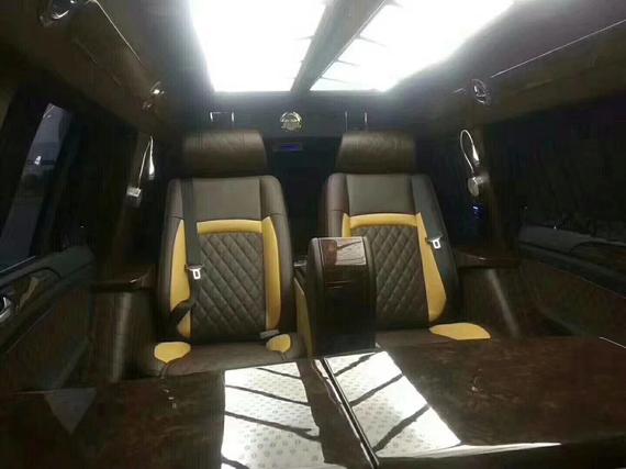 2019奔驰GLS450加长版5.98米车身手工打造迈巴赫内饰绝对的亮点,整个车内几乎被真皮包裹起来,缝合线非常均匀,车门与中控台之间的搭配相当流畅,这足以表现出装配工人们手艺的精湛,可以说只要我们能摸得到的地方,绝大部分都是真皮,剩下的就是实木和金属的装饰件了。奔驰GLS450加长采用2+2或2+4座椅格局,2个电动隐藏座椅+中央电动吧台组合。后车舱的豪华程度堪比私人飞机般豪华,柚木地板铺设,车身牛皮包裹,局部格棱纹设计处理。大面积的雀眼枫木装饰使内饰奢华感倍增。在吧台下方还有一张隐藏式电动商务会议桌。