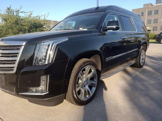 凯迪拉克总统一号,加长5.98米,黑色 ,米色内饰 6.2L V8 发动机,8速变速箱,两驱四驱可切换,自动调节悬挂系统,电子转向系统,拖车系统,前舱bose环绕立体声音响,主动噪音消除,收音机、CD、MP3,高清卫星收音机,卡迪拉克CUE系统及8寸导航屏幕,蓝牙系统,12英寸可构建显示及驾驶员信息中心,皮质方向盘,加热方向盘,方向盘带控制中心,按键启动,遥控启动,无钥匙方便进入,12方向皮座椅,加热、通风前座椅,四门电动窗、前后独立控制舒适空调系统,电动可折叠带加热及转向灯的反光镜,雨量感应雨刷,自动远光前灯,前后停车辅助,电动掀起和划动天窗,22寸铝合金轮毂,电动可调整开启角度尾门,双级开启气囊,头胸部气囊,自动稳定带循迹系统,胎压监控,环影系统,防盗系统,盲点警示,后车流警示,驾驶员警示包。后舱6向高级德国Napa真皮航空座椅带加热通风及气动按摩,舒适腿托,4区域高级气氛灯,可独立控制,日光模拟灯光效果,梦幻蓝夜间气氛灯,7寸智能中央控制触摸屏,控制后舱所有电子及电动设备,高级隐藏式秘书座椅,冰箱酒柜,电动小桌板,咖啡机,天窗,无线充电,40寸液晶电视可连无线网络