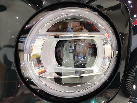 19款奔驰G500前进气格栅的尺寸更大,将之前的三横条设计改为了双层设计,两侧的大灯依旧采用圆形造型。圆形大灯的设计让本身给人感觉很硬朗的奔驰G级 (配置|询价),变得有些许呆萌,大灯光源采用LED,外圈为日间行车灯。
