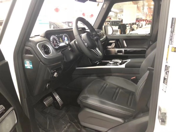 内饰部分,高级棕色的内饰颜色质感十足,采用的一体大屏设计十分引人关关注,这是它与18款车型之间非常明显的一个区别,两年一些豪华车身上陆陆续续的出现这种大屏设计,但当这一设计出现在奔驰G的身上时,还是会有一种不可思议的感觉。中控部分,空调出风口中央是大家最爱的三把差速锁设计,这也是此车拥有强悍越野性能的一个保障。座椅方面,这款车采用的是多功能座椅,并带有加热、通风、按摩功能,乘坐舒适度相对较高。(更多详情请咨询文章末端经销商)