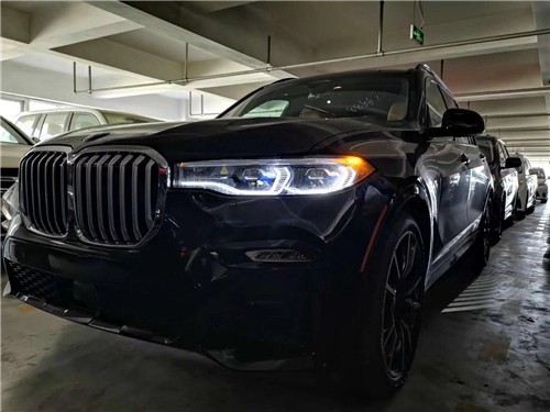 外观上X7的前保险杠下进气口部分开口更加夸张。长*宽*高 5163*1933*1805 轴距更是超越现款的GLS450达到3105。图片为2019款宝马X7 加拿大版本的顶配车型。选装卓月豪华包(前排舒适座椅18向电动调节、舒适旅行系统+后排手动遮阳帘、5去空调+温控杯架、遥控启动+电吸门+抬头显示、增强型辅助泊车带环车影像、Merino真皮、星空全景天窗、高级香氛组件、Nappa真皮仪表台、前排座椅通风按摩、激光大灯、璀璨水晶质感内饰组件、专业驾驶辅助、车道保持、自使用巡航跟停、前方交通报警、避让障碍物辅助、转向和车道控制)闪耀的激光打灯饱受大家欢迎。