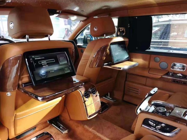 2019款劳斯莱斯全新幻影电动折叠板和后排影院系统被巧妙的隐藏在前排座椅的椅背后,只需轻触按钮,便可以自如收放桌板和影院系统,带来完美的剧院体验。后排中央固定扶手做了重点优化,其中国可容纳带有威士忌酒具的酒柜、香槟酒具和冷藏箱,方便乘客畅快交谈,后排座椅角度可以任意调节,这一设计让客户无需转头便可视线自如交流。举世闻名的星光饰顶抬头可见,整个车厢内饰全部以最精美的高档材料装饰,使车内极具触感。