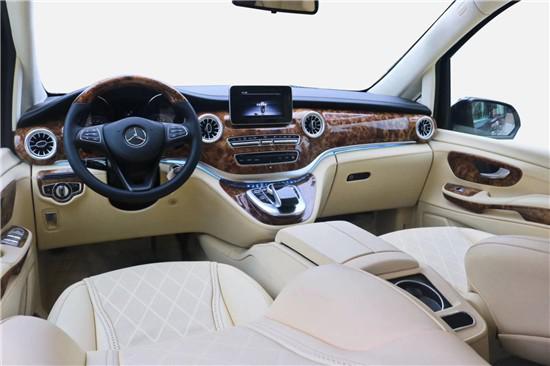 进入到V250改装迈巴赫VS680的驾驶舱,采用奔驰现款轿车的设计风格,豪华之感十分浓郁。整个车舱全部采用软性皮质包裹,中控的胡桃木覆盖以及周边镀铬的律动的装饰条,轻而易举的将奢华感受烘托出来。V250动力系统依旧为2.0T汽油发动机与7速手自一体变速箱搭配,具有高效的操控性能,低能量消耗以及超乎寻常的舒适感,为驾驶者与乘用者提供难忘的驾乘体验。