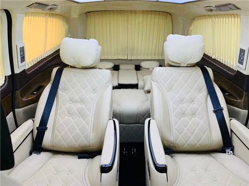 2019新款进口奔驰迈巴赫VS680商务车改装改装 每一席座椅皆享尊贵定制级的豪华舒适,即便身处第三排,亦能享受以人机工程学打造的应需而变的舒适旅程,进口奔驰迈巴赫VS680商务车改装后排坐椅垫可前后电动调节,椅背整体可倾斜,实现躺卧姿势。宽大的中央扶手采用皮质包覆,提升用户便利性。
