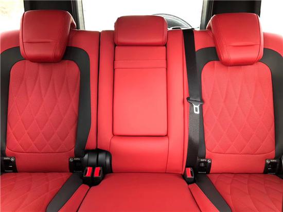 2019款奔驰G63 (配置|询价)车内采用深色调与桃木装饰,黑色真皮运动座椅非常舒适,方向盘以高档真皮包裹装饰,触感极其细腻。配有桃木装饰的操控台,稳重大气,同时提高了整体的质感。各种功能按钮应有尽有,丝毫不次于豪华轿车的功能。