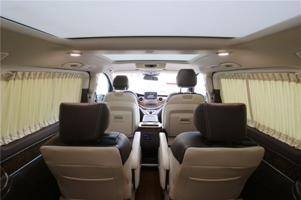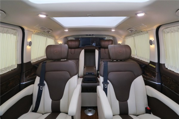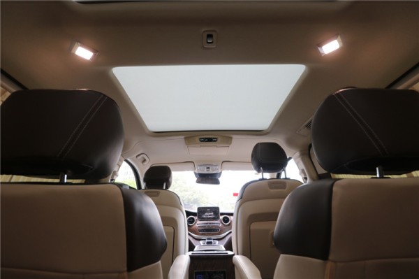 后舱的重新定制升级也是豪华感十足,采用了无隔断的7座布局。奔驰商务车v260新款后舱全景双天窗的设计营造出明亮宽敞的感觉,全车也标配了电动的隐私窗帘。