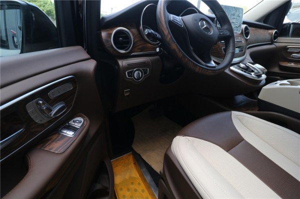 豪华柚木地板,更容易打理,也增加了尊贵的体验。奔驰商务车v260新款前端座椅扶手处还有两个杯托和一个置物槽,方便后排使用。灯光一键操控界面,随手选择,调节车内氛围。
