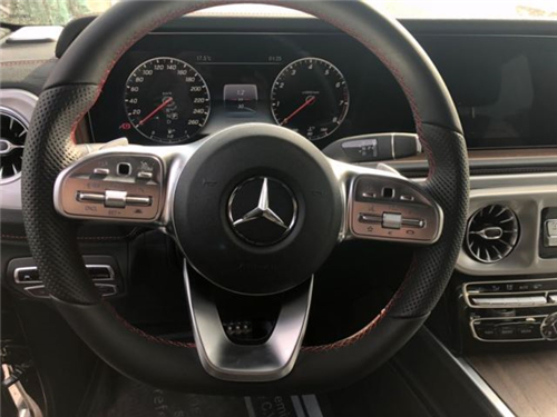 奔驰G550的内饰豪华气派,卓越的品质和精致的工艺在车内体现得淋漓尽致,对细节的精益求精是内饰设计中的重要原则。车内采用深色调与桃木装饰,黑色真皮运动座椅非常舒适,方向盘以高档真皮包裹装饰,触感极其细腻。