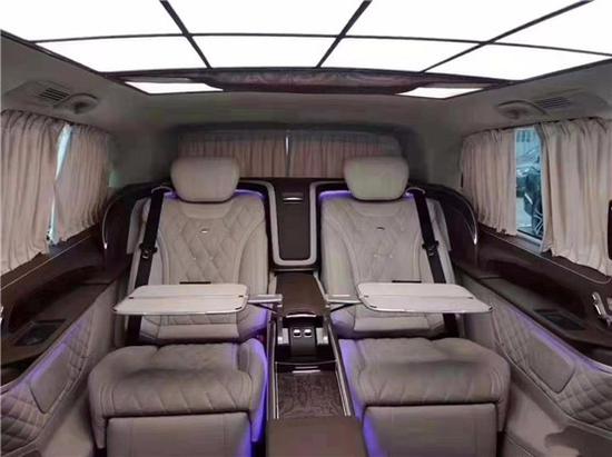 迈巴赫进口奔驰V级V250商务车改装六座进口奔驰V级V250商务车,第二排则为隐藏式座椅,可根据用车需求一键开合,收起时就会变成豪华吧台,科技感十足!两个奔驰GLS (配置|询价)450的秘书座椅座椅,可电动语音识别进行收回展开,隔断处配备32寸高清液晶电视,立体环绕柏林之声音响