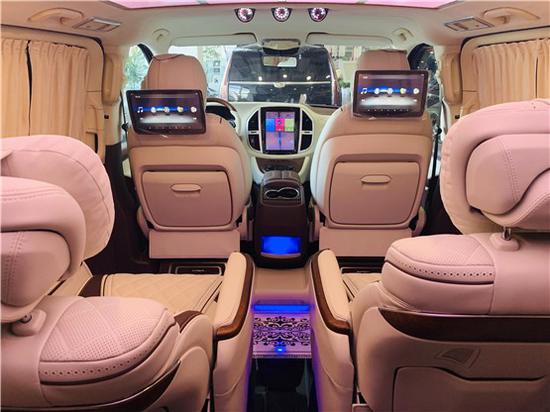 奔驰威霆改装房车麂皮绒包覆的顶棚,加装迈巴赫宫格式顶灯和星空氛围灯带搭配,使整个内饰明亮耀人,同时略带俏皮气氛。乘坐更具温馨,浪漫,舒适感受。奔驰威霆改装房车高雅的格调,使得内饰环境变得优美舒适!让人身心愉悦。