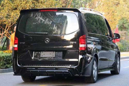 奔驰威霆 (配置|询价)改装迈巴赫版月末大促销 从外观来看看这辆奔驰新威霆 (配置|询价),商务MPV在很多人的心目中就是有方方正正,外形稳重的既定形象风格,但是新威霆勇于打破这种定式,新威霆的外观与老款相比,去掉了很多在现在看来略显过时和多余的设计,整体看来也要时尚精神了很多。气场上也能够和那些运动型轿车相媲美。前引擎盖上的棱线被刻画的加的立体,三幅式进气格栅的尺寸和老款相比也加大了许多,新威霆的车大灯改用了和奔驰V级 (配置|询价)相同的造型款式,分体式结构的远近灯光,让光源分配更加合理。