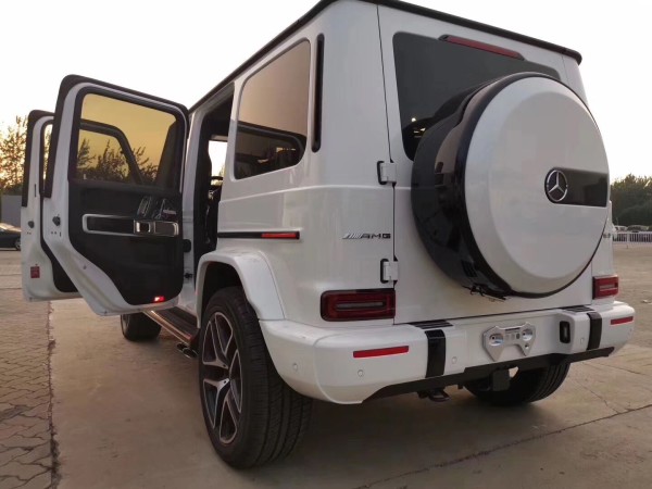 19款加版奔驰G63 (配置|询价)新款采用AMG的Panamericana格栅式设计,采用直瀑式格栅设计,并配备红色卡钳,穿孔制动盘和22英寸的磨砂轮毂,使外观的造型更激进。车身采用更智能的材质,减少驾驶室内的噪音同时,安全性也比老款更好。