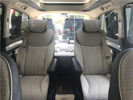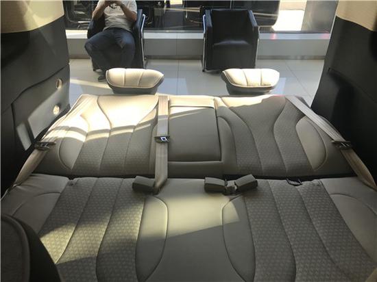 第二排座椅安装进口首席航空座椅,加热通风按摩功能齐全,最大限度的减缓您的乘车疲惫。座椅带有八向电动调节:电动头枕,电动腿托,前后电动调节,电动靠背调节。并加装了木地板、鹿皮灯光顶棚等,非常适合商务人士用于出差办公,出行旅游。第二排的座椅不仅支持180度放平,同样支持旋转,旋转过后和第三排可以形成一个对坐的格局,瞬间可以形成一个小的会议空间或者休闲空间
