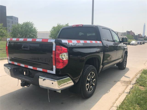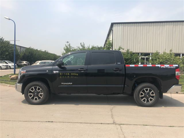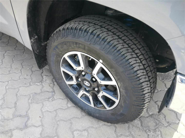 19款丰田坦途20寸轮毂,轮胎与车身中间的距离之大,如同有底盘升降的越野车型,很适合越野。丰田坦途这款车是一款男人味十足的车。试想一下,你如果站在这款车身旁,映衬着后面高大的车身,大气粗犷的线条,将会是怎样一种景象。
