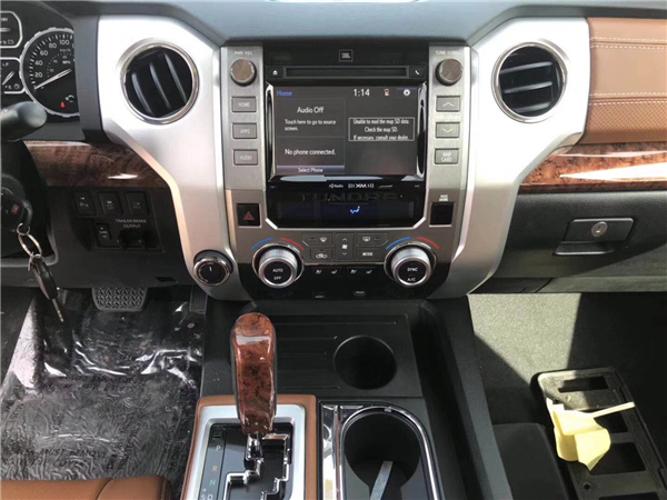 19款丰田坦途加拿大版的内饰做工十分精致,真皮座椅、桃木的方向盘、动感仪表盘,在简约的同时,透露着稳重与典雅的气息。仪表盘几乎颠覆了之前的全部设计,造型极为新颖。换挡杆造型没有变化,中央扶手箱的凹槽可以存放手机等杂物。