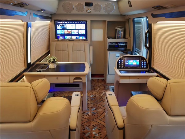 丰田考斯特改装计划大致分三种风格:1商务接待;2私家文娱;3私家奢华房车,这三种风格又能够相互叠加、相互交织。最简略的商务风格都有很多改装项目:地毯、柚木地板、真皮座椅、百叶窗帘、大屏显示器、车顶/车侧蒙皮、星空顶、电磁炉、冰箱、办公桌、操控台等等。