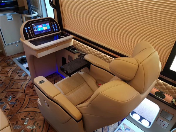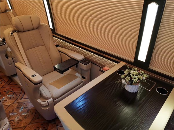 丰田考斯特内部真皮座椅选取意大利进口NAPPA真皮,设计从视、听、触、嗅、味5种感觉理念为标准,保证了改装的车辆高雅无异味。丰田考斯特内饰灯光的设计有很多不同的色彩,门槛迎宾灯、窗帘立柱灯、通道迎宾灯、多彩可随心调节的空客顶灯以及一旁阅读灯的设计,丰田考斯特灯光改造后可以更加方便乘客的工作,休息以及娱乐。