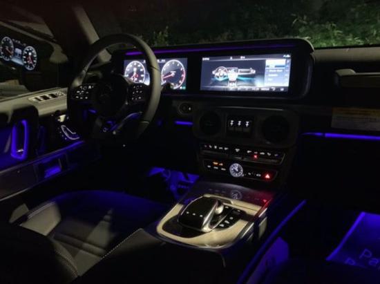 换代的最大最大亮点之一,给人耳目一新的感觉,双12.3英寸液晶通体屏幕外加与奔驰E (配置|询价) COUPE相同的空调出风口设计,让大G的内饰更加豪华,科技感也有所增强。沿用多年的四辐式方向盘也改为三辐式设计,三点以及九点处的多功能按键也与S级 (配置|询价)车型相同,两侧黑色触控按键可以控制仪表盘信息,其中行车电脑和右侧模拟仪表都可以进行切换,可显示油耗、续航里程、车辆状态等信息。在内饰用料方面,奔驰全新G级内部均采用了真皮材质包裹,手感极佳。在副驾驶台上还增加了碳纤维扶手,保护了车内人员在行车时的安全性。